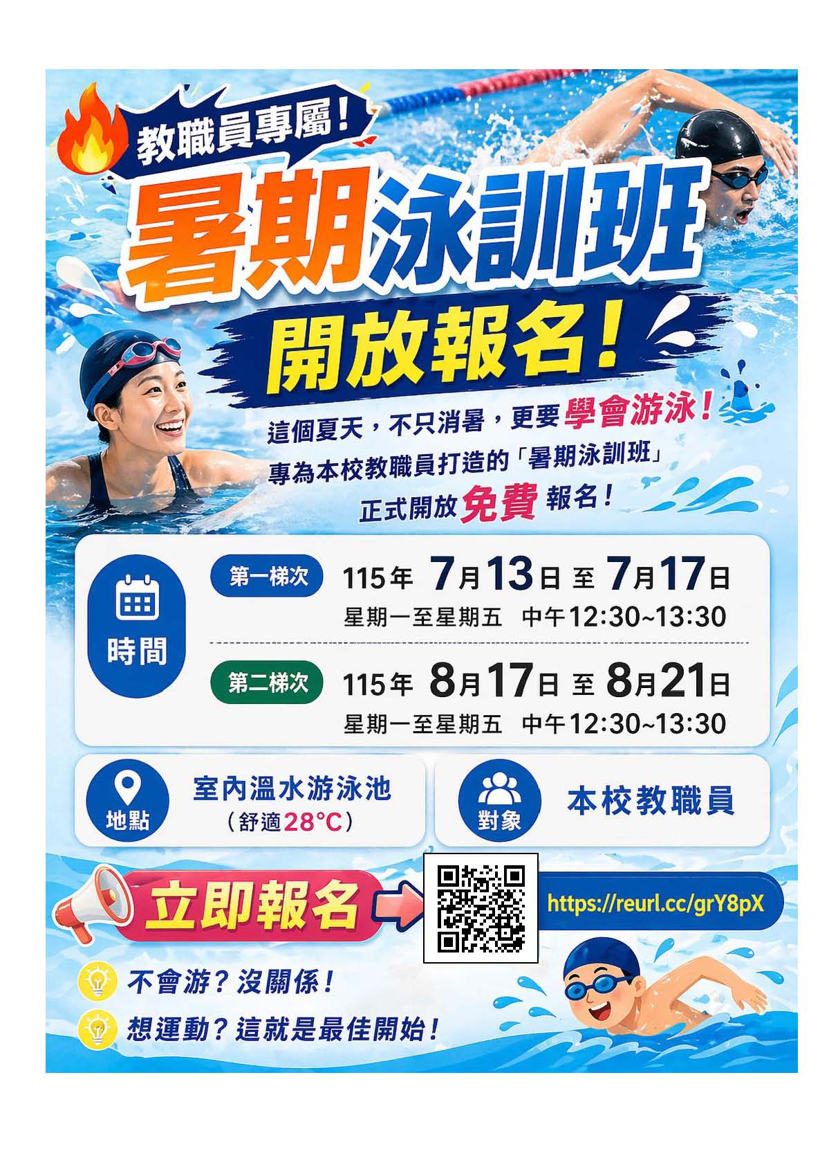 🔥 教職員專屬|暑期泳訓班 開放免費報名 🔥